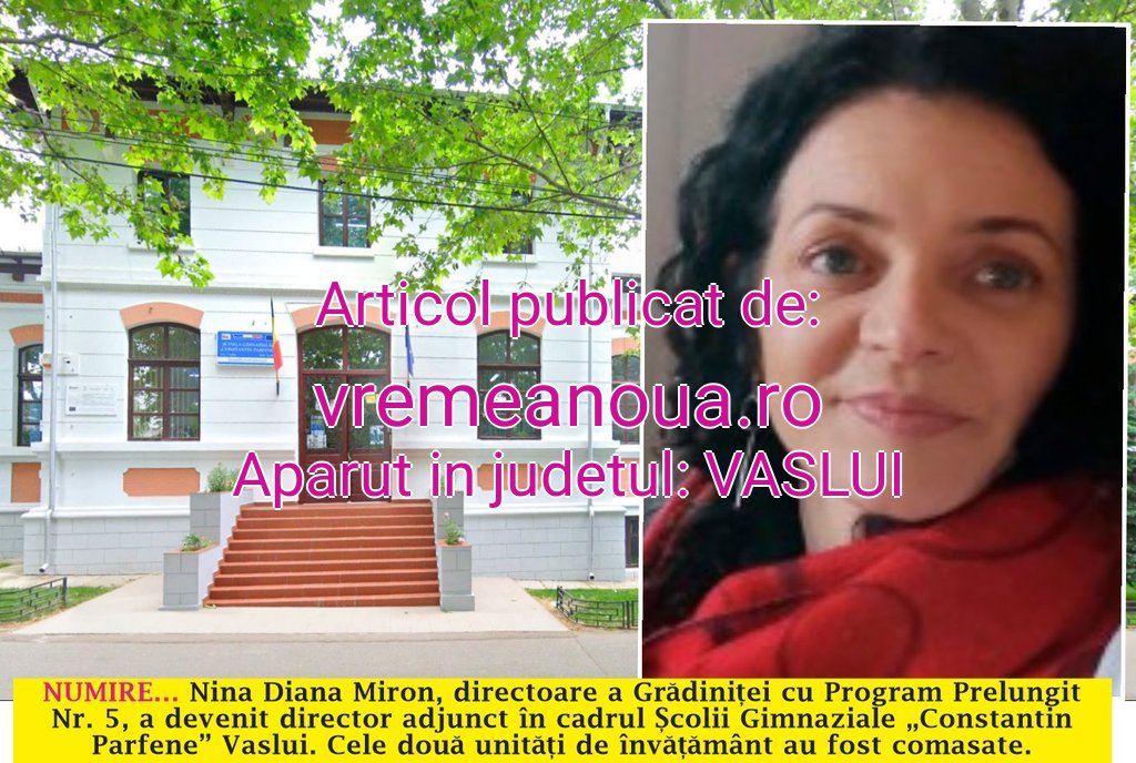 SCHIMBĂRI… Inspectoratul Școlar Județean (ISJ) Vaslui a numit noi directori de școli. O schimbare importantă a fost făcută la Școala Gimnazială „Constantin Parfene”, acolo unde în locul directoarei adjuncte Nastica Olaru a fost numită Nina Diana Miron, directoarea Grădiniței cu Program Prelungit Nr. 5. Mutarea a survenit ca urmare a comasării celor două unități de învățământ. Alte schimbări au fost făcute la următoarele școli și licee: în locul directorului Ionel Pasat de la Liceul Tehnologic „Petru Rareș“ Bârlad, a fost numit profesorul Narcis Cătălin Postolache, la conducerea Școlii Gimnaziale „Dimitrie Cantemir” a fost numită pe funcția de director adjunct profesoara Andreea Stoian, iar la Colegiul Agricol „Dimitrie Cantemir” -Cătălina Dacu. Singurele școli din județ pentru care nu s-a înscris niciun profesor sunt cele din Averești, Sălceni și Tanacu, însă, până la începerea anului școlar, vor fi numiți și aici directori.